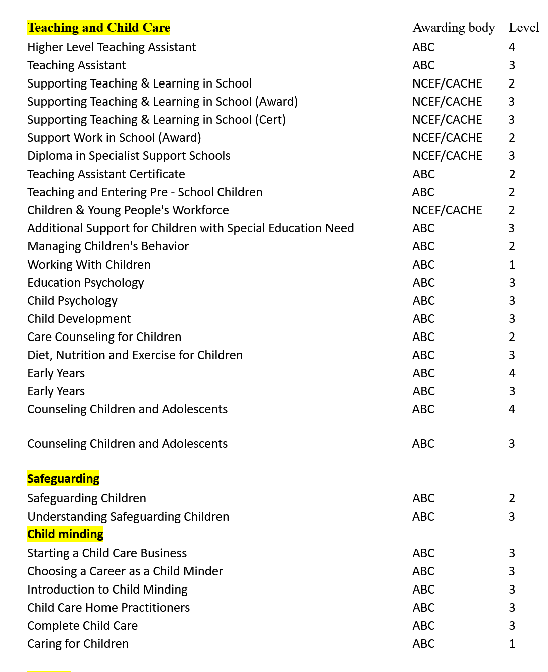 Teaching and Childcare